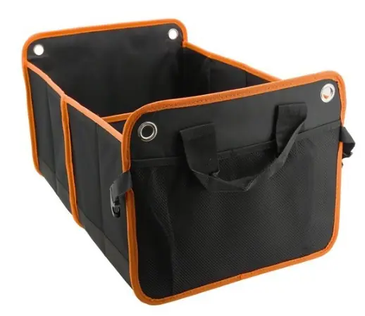 Organizér s rozměry 54 x 34 x 31 cm je zhotoven ze 100% polyesteru, kvalitně obšitého oranžovým lemem.