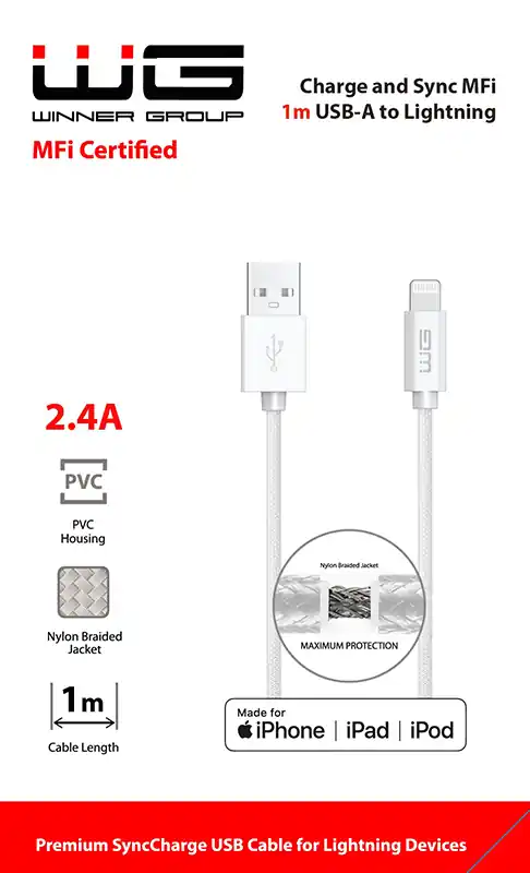 Nabíjecí a synchronizační kabel pro zařízení se slotem Lightning v bílé barvě umožňující souběžný přenos dat a rychlé dobíjení baterie. Včetně MFi certifikace.