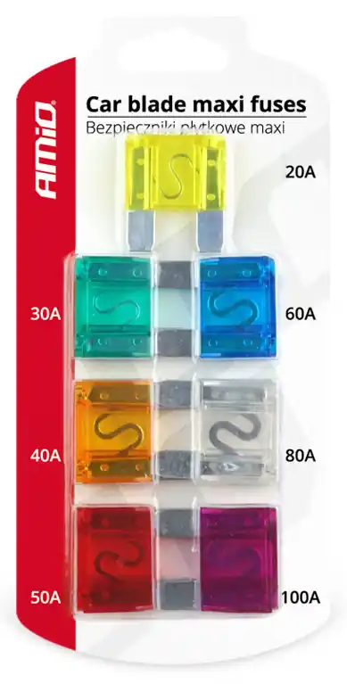 Kvalitní sada maxi pojistek na ochranu elektrických instalací před poškozením. Typ pojistky: maxi Obsah soupravy: 20A, 30A, 40A, 50A, 60A, 80A, 100A Počet kusů v balení: 7 ks