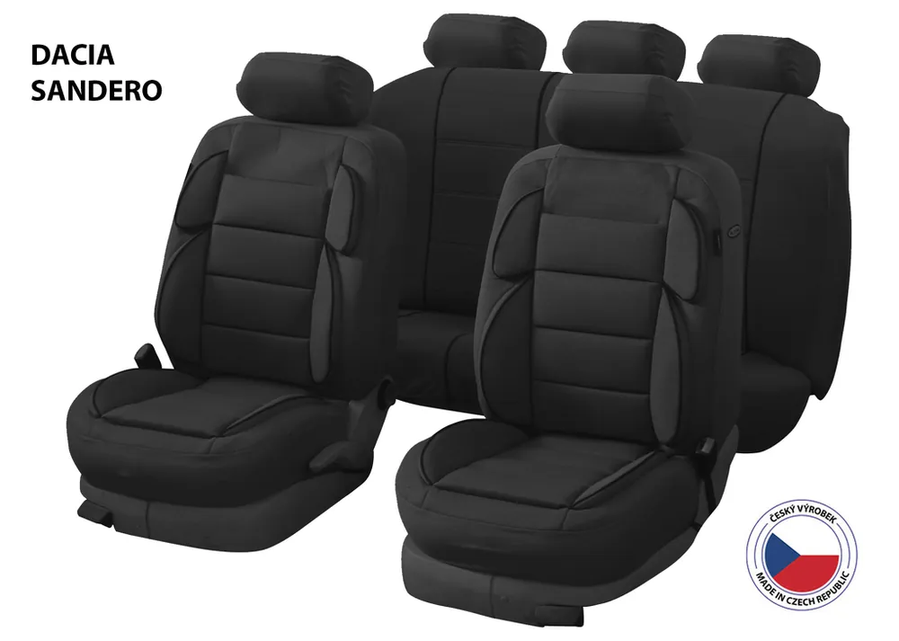 Autopotahy pro Dacia Sandero I, II, III jsou dostupnou alternativou k dražším potahům na míru. Unikátní střih dělá z této sady semi-speciál vhodný k montáži na širokou škálu vozů.Autopotahy Perfetto YL jsou vyrobeny a certifikovány atestem pro použití na sedadla vozidel i s bočními airbagy. V případě vystřelení airbagu se roztrhne speciálně ušitý šev na boční straně autopotahu.Autopotahy neklouzají po sedadle díky měkkému molitanu na vnitřní straně potahu. Opěrky a sedací části jsou vyrobeny z polyesterové tkaniny. Lemování a zadní strana autopotahu jsou vyrobeny z polyesteru.Na potazích předních i zadních sedaček je předpřipravený otvor pro opěrky hlavy. Potah je kompatibilní se sedačkami s odnímatelnými opěrkami hlavy. Zároveň je na boku předních sedadel otvor pro sklápěcí páčky.Zadní sedadla jsou vybavena zipy pro sklopení dělených sedadel v poměru 1/3 – 2/3 a pro použití zadní loketní opěrky. Sedák je vybaven otvory pro zámky pásů. Zadní opěradlo je vybaveno dalšími otvory pro použití 3. bezpečnostního pásu, sklápěcích hmatníků, apod.Střih LIMA je revoluční design firmy CAPPA pro zajištění maximální univerzálnosti potahu. Zámky pásů můžete vést skrze jeden ze tří otvorů v závislosti na tvaru sedáku, opěrky hlavy a 3. bezpečnostní pás mají připravené prostorné otvory a zipy na vrchní straně opěradla. Pro pásy zabudované přímo v zadním opěradle jsou na krajích také připravené otvory. MATERIÁL:Prošívaná polyesterová látkaElastický polyester8mm PUR pěna (předek a boky)12mm PUR pěna (polstrované panely) TECHNICKÝ POPIS:Vyrobeny a certifikovány atestem pro použití s bočními airbagyAutopotahy neklouzají po sedadle díky měkkému molitanu na vnitřní straně potahuPředpřipravené otvory pro opěrky hlavy a sklápěcí páčkyZadní sedadla jsou vybavena zipyPotahy jsou vhodné do vozidel s nedělenými i dělenými zadními sedačkami v poměru 1/3-2/3 na obě stranyKompatibilní se zadní loketní opěrkou, 3. pásem i integrovanými pásySada pro 5 sedadelSnadná montážAutopotahy je možné prát v pračce na 30°Vyrobeno v ČR. Balení autopotahů obsahuje 11 dílů:Sedadlo řidiče1× opěrná část1× sedací část1× potah opěrky hlavySedadlo spolujezdce1× opěrná část1× sedací část1× potah opěrky hlavyZadní sedadla1× sedací část spojená 2 zipy1× opěrná část spojená 2 zipy3× potah opěrky hlavy