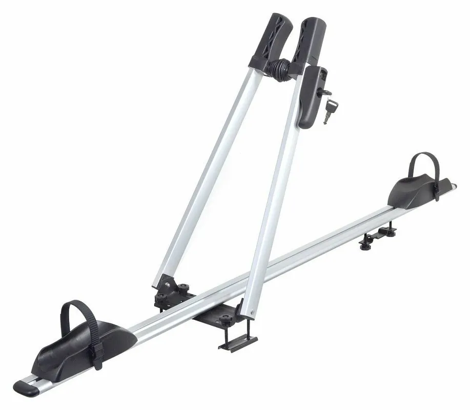 Univerzální střešní nosič pro jízdní kolo s jednoduchým systémem upevnění.