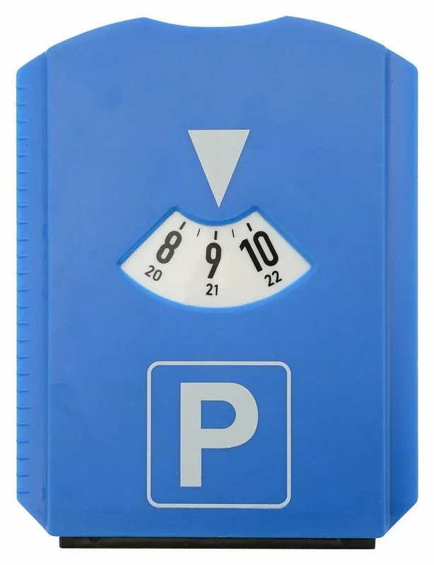 Parkovací hodiny z odolného plastu s otočným diskem.