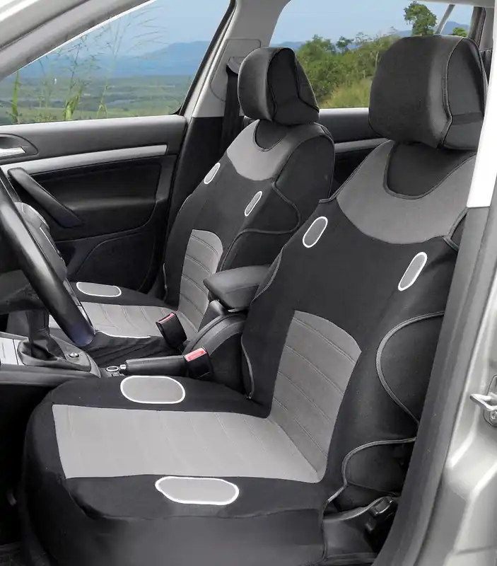 Potahy sedadel s univerzálním systémem upevnění, sada na přední sedadla (2x přední díl s opěrkami hlavy).