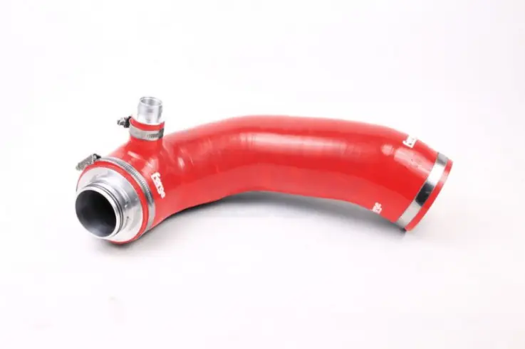 Forge Motorsport vysokopropustná sací hadice pro vozy MQB platformy s motorem 2,0 TSI. Toto chytré řešení eliminuje restriktivní plastikový vstup do turbodmychadla, který nahrazuje CNC obrobeným zvětšeným vstupem do turbodmychadla a několikavrstvou silikonovou hadicí. To zlepšuje proudění vzduchu ke kompresoru turbodmychadla a tím zlepšuje efektivitu a výkon motoru. U tohoto jednoduchého řešení lze vidět nárůst až 10 koní.