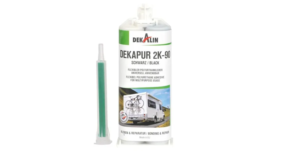 Dvousložkové polyuretanové lepidlo Dekalin DEKApur 2K-90 je ideální pro rychlé a pevné opravy konstrukčně namáhaných prvků. Vytvrzuje chemickou reakcí mezi dvěma složkami (poměr míchání 1:1) a výsledkem je pružná a vysoce odolná polymerní směs. Lepidlo je odolné vůči teplotám, vlhkosti, palivům, rozpouštědlům a dalším chemikáliím.