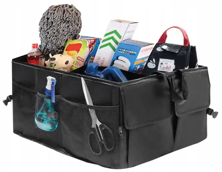 Velký a praktický organizér do auta se dvěma nebo třemi přihrádkami a dvěma kapsami. Perfektní doplněk k výbavě vašeho vozu. Umožňuje udržovat dokonalý pořádek v kufru a poskytuje snadný přístup k příslušenství, nářadí a nákupům. Praktický organizér do kufru auta nebo i na zadní sedačku je vyrobený z pevného polyesteru.