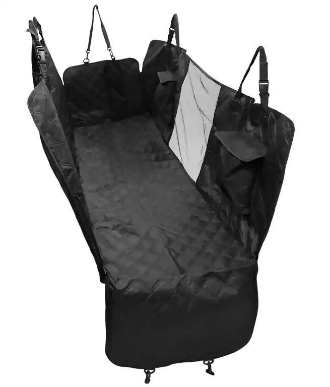 Autopotah pro ochranu zadních sedaček a dveří při přepravě domácích mazlíčků, nářadí, materiálu a mnoha dalších věcí, které mohou znečistit interiér Vašeho automobilu. Podložka je vyrobena z kvalitních nepropustných materiálů, tudíž nehrozí nebezpečí ušpinění sedaček a dveří. Rub podložky je vyroben z protiskluzové síťoviny.Boční chrániče dveří jsou spojeny zipem pro vytvoření ohrádky. Součástí balení je popruh s karabinou pro zapojení do zámku bezp. pásu.TECHNICKÝ POPIS:Montáž:Pro snadnou montáž jsou na podložkách našité tkanice s umělohmotnými přezkami, které se uchytí za hlavové opěrky a deka se vypne podle tvaru sedaček.Parametry:UniverzálníMultifunkčníRychloupínací přezkyPopruh pro psa do zámku bezp. pásuChrání interiér vozu před znečištěním a poškozenímSnadná montáž a přepravaVhodné pro všechny typy automobilůRozměr:145 x 137cm