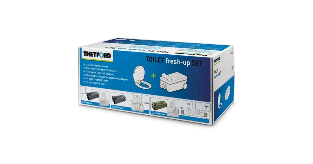 Obnovovací sada pro kazetové WC značky Thetford C2, C3 a C4 obsahuje odpadní nádrž spolu se záchodovým prkénkem s víkem. Hodí se jako náhrada původní kazety nebo jako přídavná nádrž pro delší cesty. Jedná se o praktické řešení, které usnadní provoz toalety na cestách.