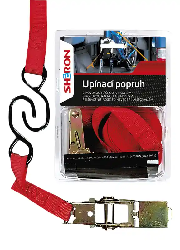 SHERON Upínací popruh s ráčnou je kvalitní popruh, určený k zabezpečení přepravovaného nákladu.