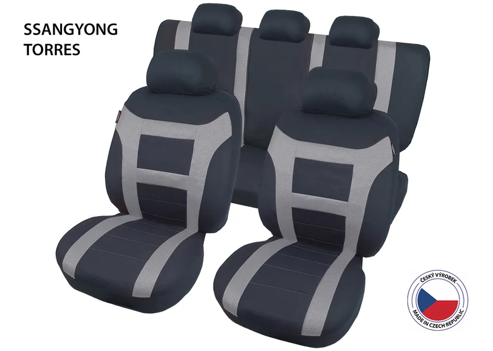 Autopotahy pro SsangYong Torres jsou dostupnou alternativou k dražším potahům na míru. Unikátní střih dělá z této sady semi-speciál vhodný k montáži na širokou škálu vozů.Autopotahy Perfetto EL jsou vyrobeny a certifikovány atestem pro použití na sedadla vozidel i s bočními airbagy. V případě vystřelení airbagu se roztrhne speciálně ušitý šev na boční straně autopotahu.Autopotahy neklouzají po sedadle díky měkkému molitanu na vnitřní straně potahu. Středové části jsou vyrobeny z polyesterové tkaniny a 3D air mesh síťoviny. Boky a záda z elastického polyesteru.Na potazích předních i zadních sedaček je předpřipravený otvor pro opěrky hlavy. Potah je kompatibilní se sedačkami s odnímatelnými opěrkami hlavy. Zároveň je na boku předních sedadel otvor pro sklápěcí páčky.Zadní sedadla jsou vybavena zipy pro sklopení dělených sedadel v poměru 1/3 – 2/3 a pro použití zadní loketní opěrky. Sedák je vybaven otvory pro zámky pásů. Zadní opěradlo je vybaveno dalšími otvory pro použití 3. bezpečnostního pásu, sklápěcích hmatníků, apod.Střih LIMA je revoluční design firmy CAPPA pro zajištění maximální univerzálnosti potahu. Zámky pásů můžete vést skrze jeden ze tří otvorů v závislosti na tvaru sedáku, opěrky hlavy a 3. bezpečnostní pás mají připravené prostorné otvory a zipy na vrchní straně opěradla. Pro pásy zabudované přímo v zadním opěradle jsou na krajích také připravené otvory. MATERIÁL: Polyesterová tkanina3D air mesh síťovinaElastický polyester3mm PUR pěna TECHNICKÝ POPIS:Vyrobeny a certifikovány atestem pro použití s bočními airbagyAutopotahy neklouzají po sedadle díky měkkému molitanu na vnitřní straně potahuPředpřipravené otvory pro opěrky hlavy a sklápěcí páčkyZadní sedadla jsou vybavena zipyPotahy jsou vhodné do vozidel s nedělenými i dělenými zadními sedačkami v poměru 1/3-2/3 na obě stranyKompatibilní se zadní loketní opěrkou, 3. pásem i integrovanými pásySada pro 5 sedadelSnadná montážAutopotahy je možné prát v pračce na 30°Vyrobeno v ČR. Balení autopotahů obsahuje 11 dílů:Sedadlo řidiče1× opěrná část1× sedací část1× potah opěrky hlavySedadlo spolujezdce1× opěrná část1× sedací část1× potah opěrky hlavyZadní sedadla1× sedací část spojená 2 zipy1× opěrná část spojená 2 zipy3× potah opěrky hlavy