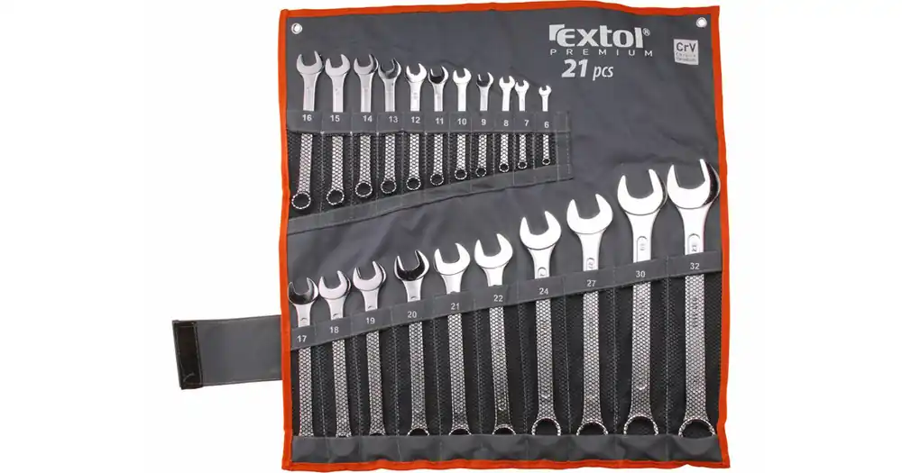 Sada očkoplochých klíčů Extol Premium obsahuje velikosti od 6 do 32 mm pro práci se stroji, auty, na stavbách či domácnosti. Klíče jsou vyrobeny z kvalitní chrom-vanadové oceli (CrV) a Extol Craft uhlíkové oceli.