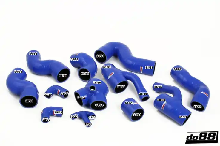 Set silikonových hadic vyrobených z kvalitního silikonu pro zajištění maximální odlonosti, trvanlivosti a vzhledu.Hadice jsou zkonstruovány tak, aby vydržely vysoké tlaky a teploty po velmi dlouhou dobu. To je rozdíl oproti originálním gumovým hadicím, na kterých se po čase objeví prasklinky, případně se protrhnou úplně. Tato sada je tak ideální náhradou, která může preventivně zabránit mnoha komplikacím s originálními hadicemi.